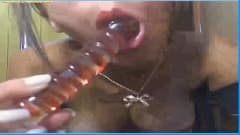 ![Cena caseira com um brinquedo sexual e óleo Cena caseira com um brinquedo sexual e óleo]()