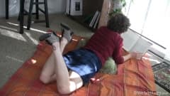 Meg é uma morena madura de cabelos cacheados. A puta tem uma boceta peluda e adora se masturbar na frente da cêmera, é isso que a excita!