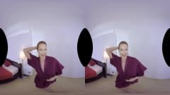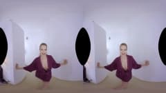 Uma mulher sensual, loira, madura e com mamas grandes pode excitar qualquer um com a maneira como se despe em frente à câmera e veste meias-calças