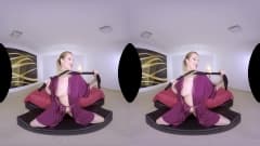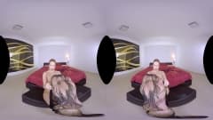 Mamãe loira veste meia-calça de renda para se exhibir em VR