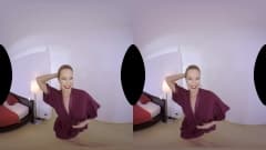 Uma loira madura com grandes mamas numa cena exibicionista tirará o seu roupão e vestirá meias-calças rendadas e tudo em VR, não perca isso!