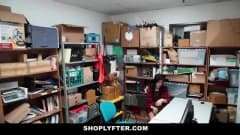 Depois de ser apanhada roubando, a garota é levada para a sala de segurança, onde os dois guardas vão fazer uma proposta: fode e chupa os dois ou prisão!