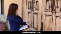 Jovem que bate de porta em porta com Bíblia procura se converter, é convertida nos prazeres do sexo anal e cum facial.
