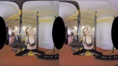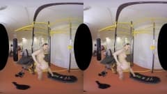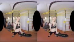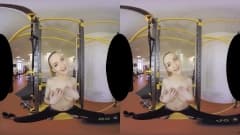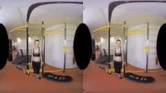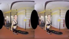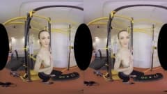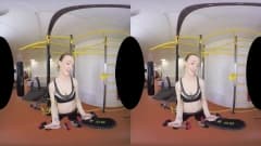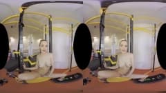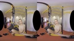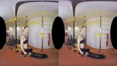 Uma garota se exercita e se estica intensamente no ginásio, ela se despe e se masturba em frente à câmera e tudo para você - uma cena em VR!