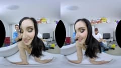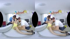 Jovem morena atraente com cabelos longos avidamente excita dois caras com seu corpo e chupa suas piças e se masturba e muito mais, veja em VR!
