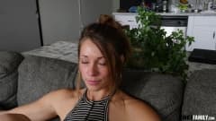 Essa loira fofa é gravada pelo meio-irmão enquanto esfrega sua buceta no banheiro. O cara a chantageia para desfrutar dessa deliciosa buceta.