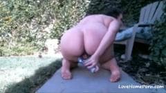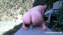 Essa é uma daquelas gordas safadas cheias de fogo, ela sabe como se deliciar descarradamente ao ar livre.