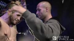 Com correntes, este homem amarra seu amigo para castigá-lo enquanto ele está nu, aproveitando a maioria de suas táticas para excitá-lo.