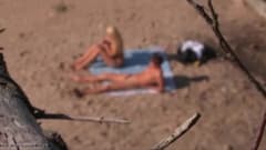 Esse cara leva uma câmera para a praia de nudismo, para filmar alguns casais que ficam muito quentes fazendo sexo na areia.