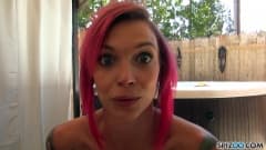 Anna Bell é uma ruiva emo que exibe suas perversas tatuagens numa cena de sexo oral, gravada por seu macho enquanto se ajoelha.
