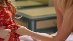 Lyra Law e Ivy Jones são vizinhas e não perdem uma oportunidade para dar uma escapada. Duas ninfetas loiras cheias de desejo se satisfazem gostoso.