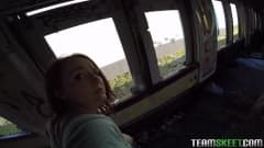 Essa loirinha safada transa muito no vagão do trem por dinheiro ela é uma sacana uma verdadeira putinha safada.
