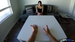 A jovem morena Sadie Pop comemora seu novo trabalho com sexo. A garota molha o pau do patrão e enfia na bucetinha. Ele chega ao clímax na bunda dela