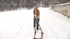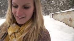 Um casal Checo se abriga numa cabana depois de brincarem na neve. Para se aquecer não há nade melhor do que uma boa foda com essa gata.