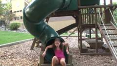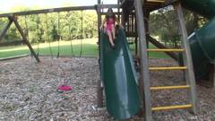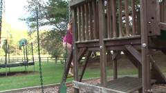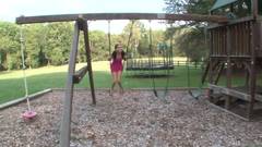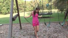Essa jovem queria brincar no parque infantil, mas quando chegou, não encontrou ninguém. É por isso que ela decide se masturbar no baloiço.