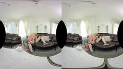 Duas jovens loiras acariciam as bucetas uma da outra em VR