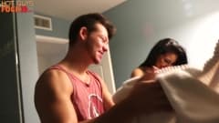 Jhonny America vira maluco com as enormes mamas naturais dessa gata morena e logo vai dar para ela o seu caralho duro para fazer ela gemer gostoso.