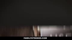 A mãe sai e a garota fode com o padrasto e o filho dele!