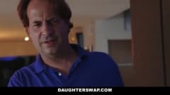 Uma morena e uma loira vão assistir filme com os dois pais, e as safadas comem as pipocas e trepam na rola do pai da outra. Que belas amigas safadas!