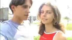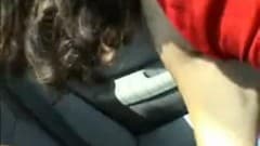 Um casal amador senta-se por um momento no banco de trás para foder enquanto o carro está parado na berma da estrada.