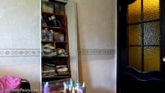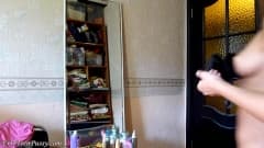 Uma jovem muito bonita experimenta roupa interior sexy na frente do espelho. Não perca sua bela bunda no fio dental.