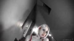 Uma linda garota loira peituda com um vestido vermelho sexy é fodida nas escadas. Ela gosta de sexo vaginal, mas desta vez ela prefere sexo anal.