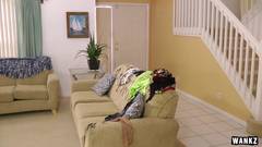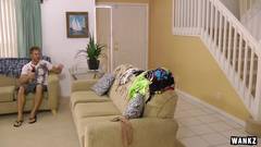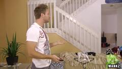 A MILF loira Dallas Diamondz anda de topless enquanto seu enteado fica excitado e come sua buceta antes de Dallas montar em seu pau