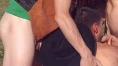 Aqui vamos ver George Plozen, Sebastian DeLong, Milan Breeze e Tommy Sem fodendo na frente do estábulo depois de um dia de trabalho no campo.
