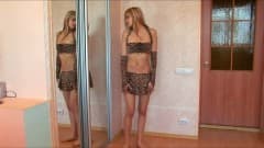 Temos uma menina gostosa que vai tocar-se sensualmente em frente ao espelho.