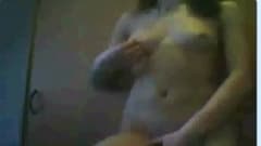 A morena que vemos aqui sai do banheiro com uma toalha e percebe que ela deixou o computador ligado. Agora que a viram, ela se desnudará completamente