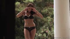 A jovem morena sexy é mestre em provocar, enquanto passa a mão em seu corpo até a buceta gostosa