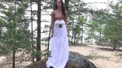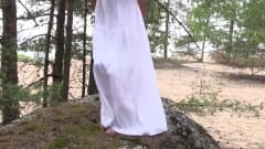 VVocê vai ver que esta jovem com tesão vai se divertir muito se masturbando sozinha ao ar livre, usando as mãos para acariciar-se.