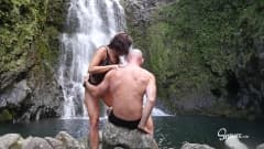 Em algumas cachoeiras ao ar livre, este casal decidiu tirar todas as suas roupas e começar a foder descontroladamente no meio do rio.