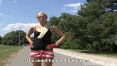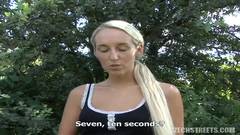 É excitante ver esta loira ao ar livre