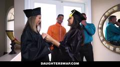 Como um presente de formatura para suas filhas, esses homens as trocam para poder fazer sexo com elas e elas vão gostar de fazê-lo no sofá.