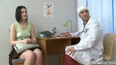 Essa jovem morena sexy vai receber uma inspeção oral hoje, acabando no cacete do doutor...