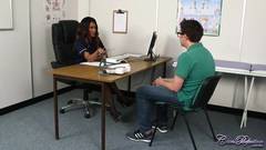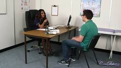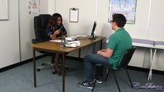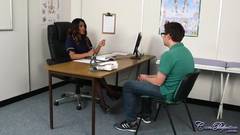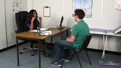 Uma linda médica negra analisa o pau do paciente de perto, dando muita atenção para ver se encontra algo de errado. Veja que boquete gostoso que ela dá!