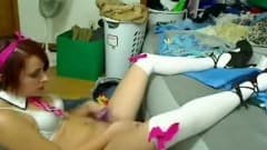 Essa moça bonitinha de cabelo curto e ruivo está prestes a apresentar à sua buceta quente e húmida os seus amigos de silicone enquanto os mergulha bem dentro dela!