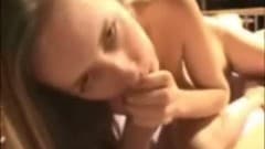Uma jovem loira amadora é pega enquanto chupa o pinto de seu namorado.