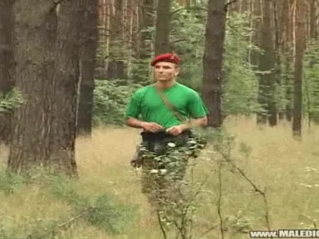 Este soldado perdeu-se do resto de seus companheiros, e ficar sozinho no meio da floresta o faz querer se masturbar de uma maneira gostosa.