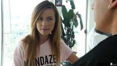 Esta garota terá suas roupas rasgadas pelo namorado tatuado que quer uma chupada e uma foda. No final ele goza e bate com o pau na cara dela.