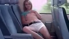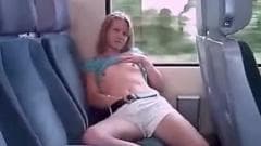 Essa loira fofa vai se masturbar na frente da câmera em um trem em movimento. É uma delícia ver essa mulher e imaginar estar com ela dando prazer.