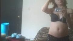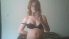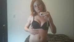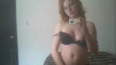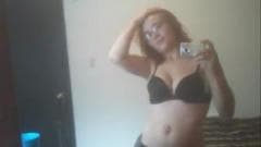 Esta mulher gosta de gravar-se enquanto se move muito sexy na frente do espelho. Ela tira o sutiã pouco a pouco para nos mostrar tudo.
