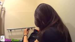 Esta jovem puta sabe como ganhar dinheiro! Num provador de roupas num shopping, ela vai chupar o pau de um cliente excitado por dinheiro e roupas, confira!