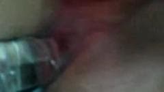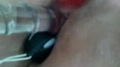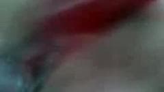 Esta mulher sentiu desejo sexual e é por isso que decidiu se masturbar com dois dildos ao mesmo tempo. Ela grava tudo muito de perto com seu celular.