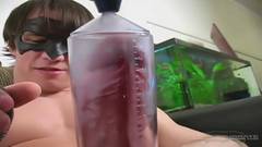 Esse moreno comprou uma bomba de sucção peniana, com a qual ele quer pôr o pau maior, e parece ter muito efeito.