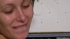 Esta jovem morena amadora toma banho e é confrontada com o pau duro de seu namorado que quer alguns beijos.