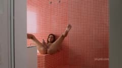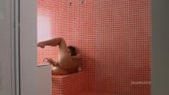 Ela quer se masturbar enquanto toma banho e, como não tem brinquedo sexual, coloca a primeira coisa que tem na mão.