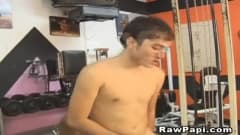 Veremos que esses dois caras morenos ficam com tesão quando estão no ginásio e decidem foder em uma máquina abdominal.