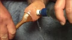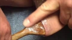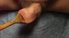 Este homem tem um pau flácido e enfia uma colher de pau com muita força, pois é o seu fetiche favorito. Você ficará impressionado com esta cena pornô